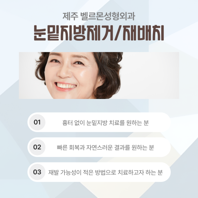 본원의 제주 눈밑지방제거/재배치는 아래와 같은 고민을 가진 분들께 특히 추천드리는 눈 성형입니다.
